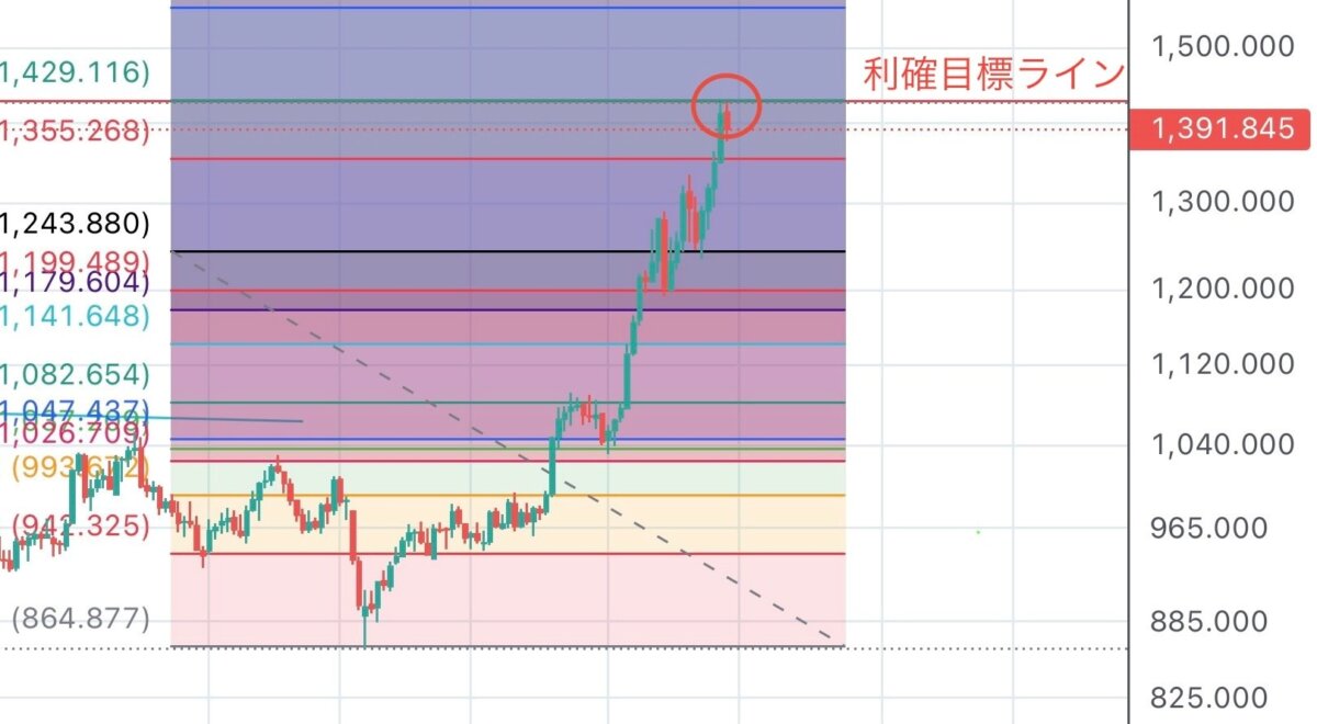 無理に初動(てっぺん)で入らなくても大丈夫ですし、一瞬でも高値を超えたら根拠が崩れるポイントが割り出せれば損切りは極小になります。