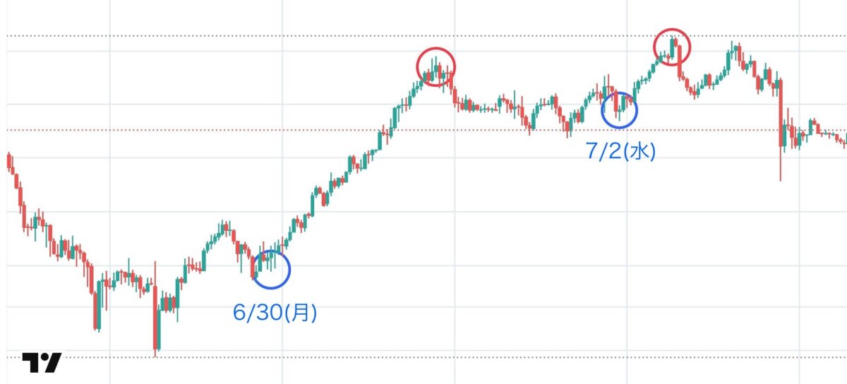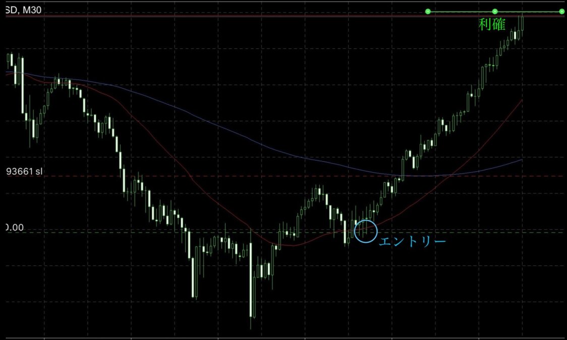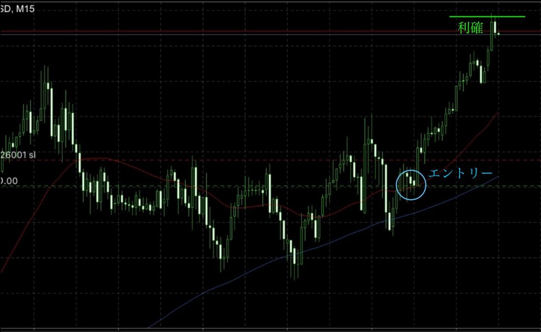 青〇がエントリー赤〇が利確ポイントになります。 エントリーチャートは以下になります。