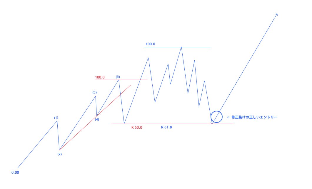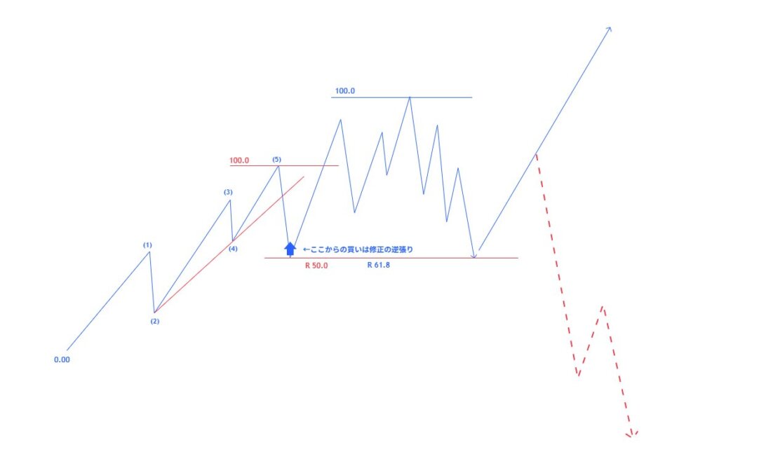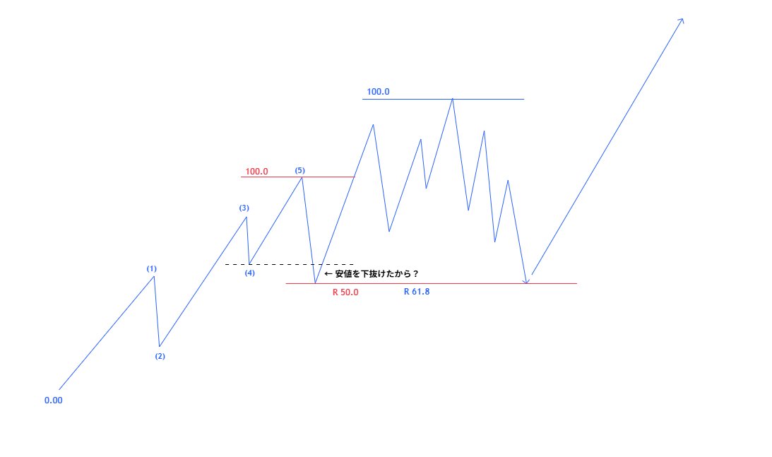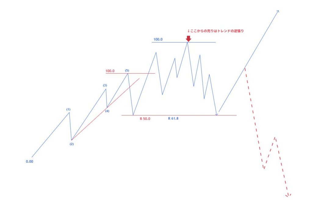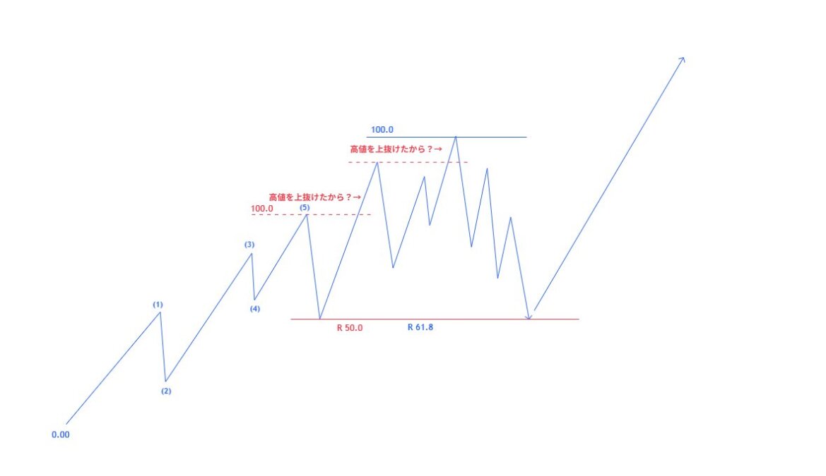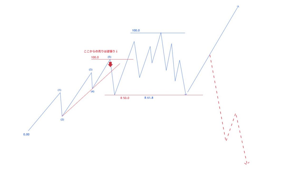 高値によってはリトレースの数値も変わってきますし、上昇の5挙動自体も変わってきます。