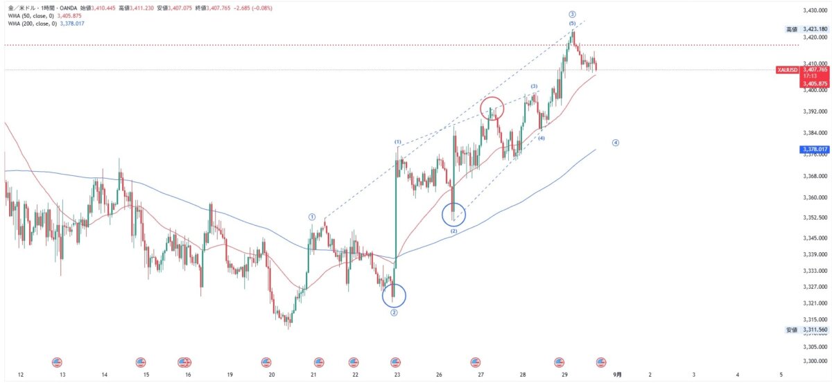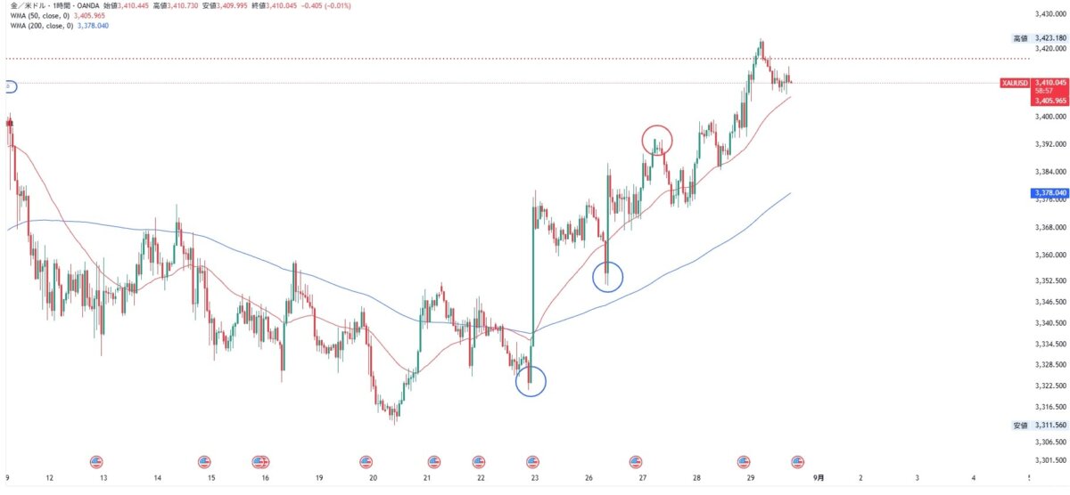 今回は8月22日から27日まで保有したGOLDのロングエントリーを解説していきたいと思います。 ※ 28日以降のトレード解説は省略します。