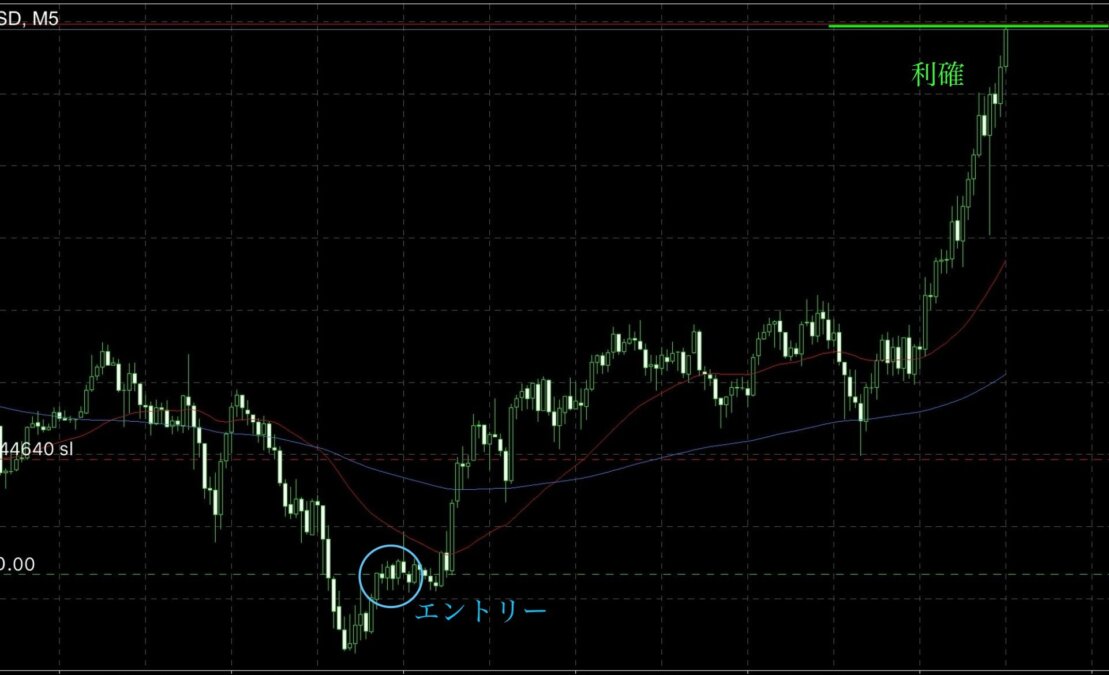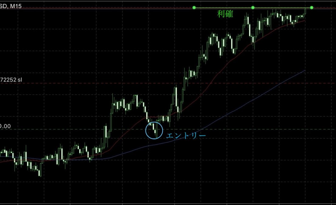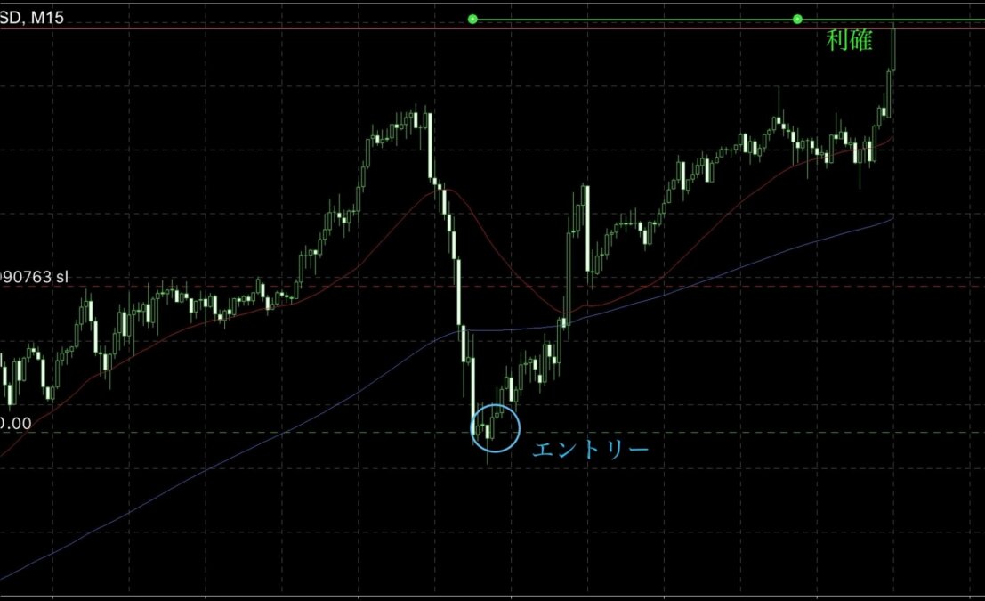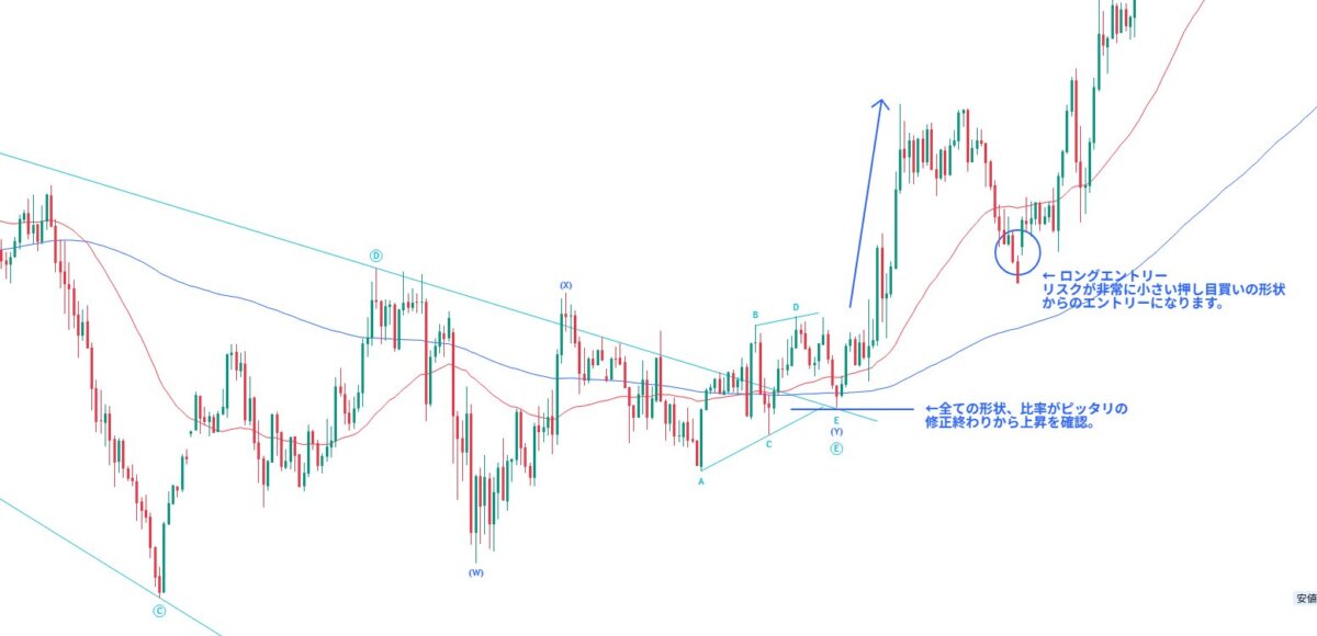 そして最後のエントリーは修正を待ってからの押し目買いになります。<以下エントリーチャート>